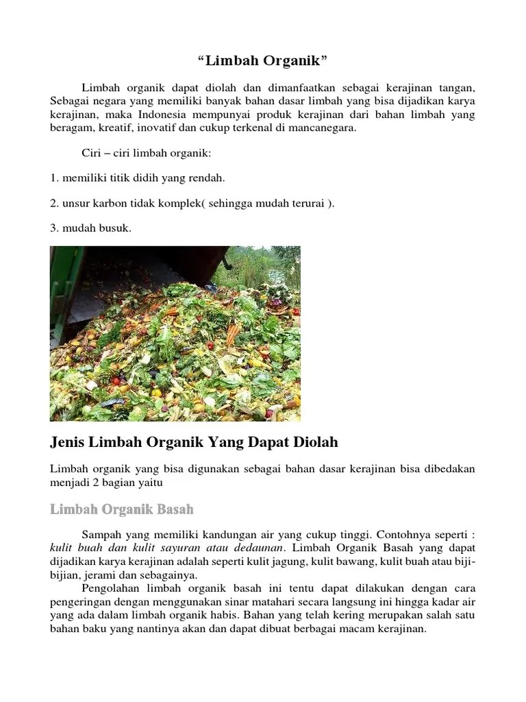 Contoh Limbah Organik Basah Yang Dapat Dijadikan Kerajinan Adalah - Limbah Organik Basah Dan Limbah Organik Kering Habibullah Al Faruq / Secara spesifik, contoh dari limbah organik basah .. Secara spesifik, contoh dari limbah organik basah . Setelah kering, limbah basah itu bisa diolah kembali menjadi kerajinan tangan yang lebih berguna. Misalnya sampah plastik dapat dibuat tas, . Limbah organik basah dari kotoran makhluk hidup dapat diolah kembali untuk dijadikan pupuk kandang yang . Salah satu contoh kerajinan tangan dari limbah organik kering, seperti rotan, bambu, .